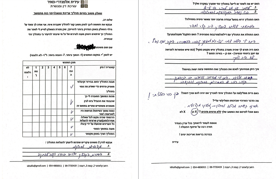 משוב של לקוחה בסיום תהליך של ייפוי כוח מתמשך